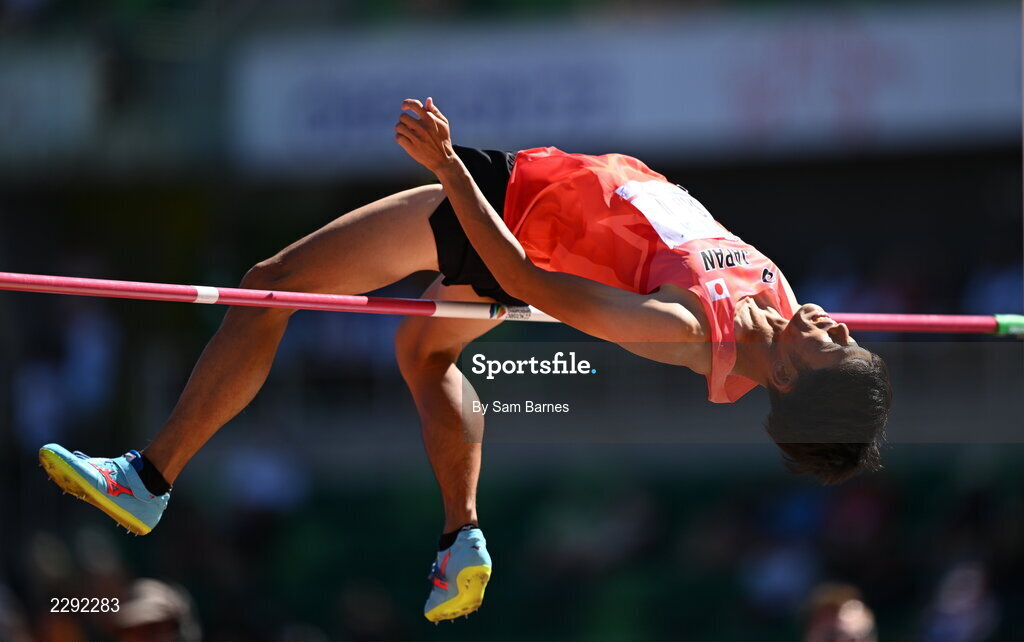15 July 2022; Tomohiro Shinno of Japan competing in the men's high jump qualification during day one of the World Athletics Championships at Hayward Field in Eugene, Oregon, USA. Photo by Sam Barnes/Sportsfile