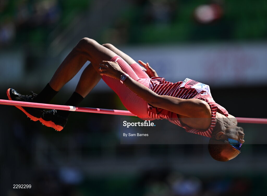 15 July 2022; Mutaz Essa Barshim of Qatar competing in the men's high jump qualification during day one of the World Athletics Championships at Hayward Field in Eugene, Oregon, USA. Photo by Sam Barnes/Sportsfile