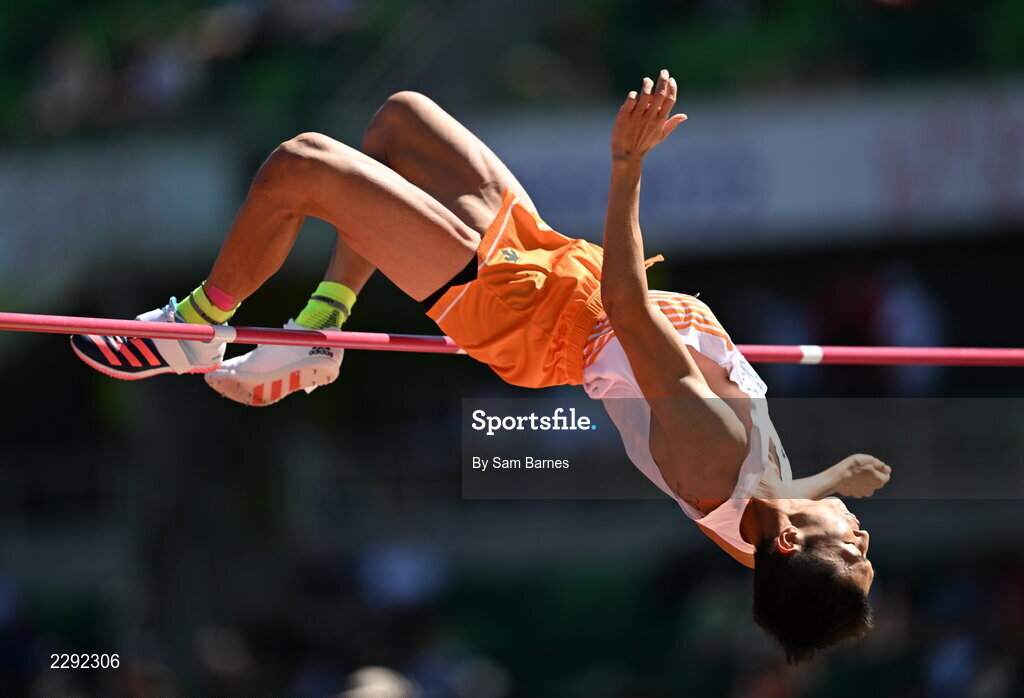 15 July 2022; Sanghyeok Woo of Korea competing in the men's high jump qualification during day one of the World Athletics Championships at Hayward Field in Eugene, Oregon, USA. Photo by Sam Barnes/Sportsfile