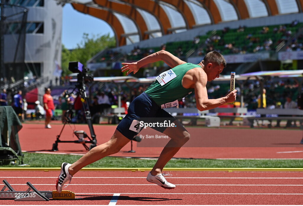 15 July 2022; Chris O'Donnell of Ireland competing in the mixed 4x400m relay heats during day one of the World Athletics Championships at Hayward Field in Eugene, Oregon, USA. Photo by Sam Barnes/Sportsfile