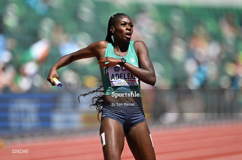 15 July 2022; Rhasidat Adeleke of Ireland after finishing second in the mixed 4x400m relay heats during day one of the World Athletics Championships at Hayward Field in Eugene, Oregon, USA. Photo by Sam Barnes/Sportsfile