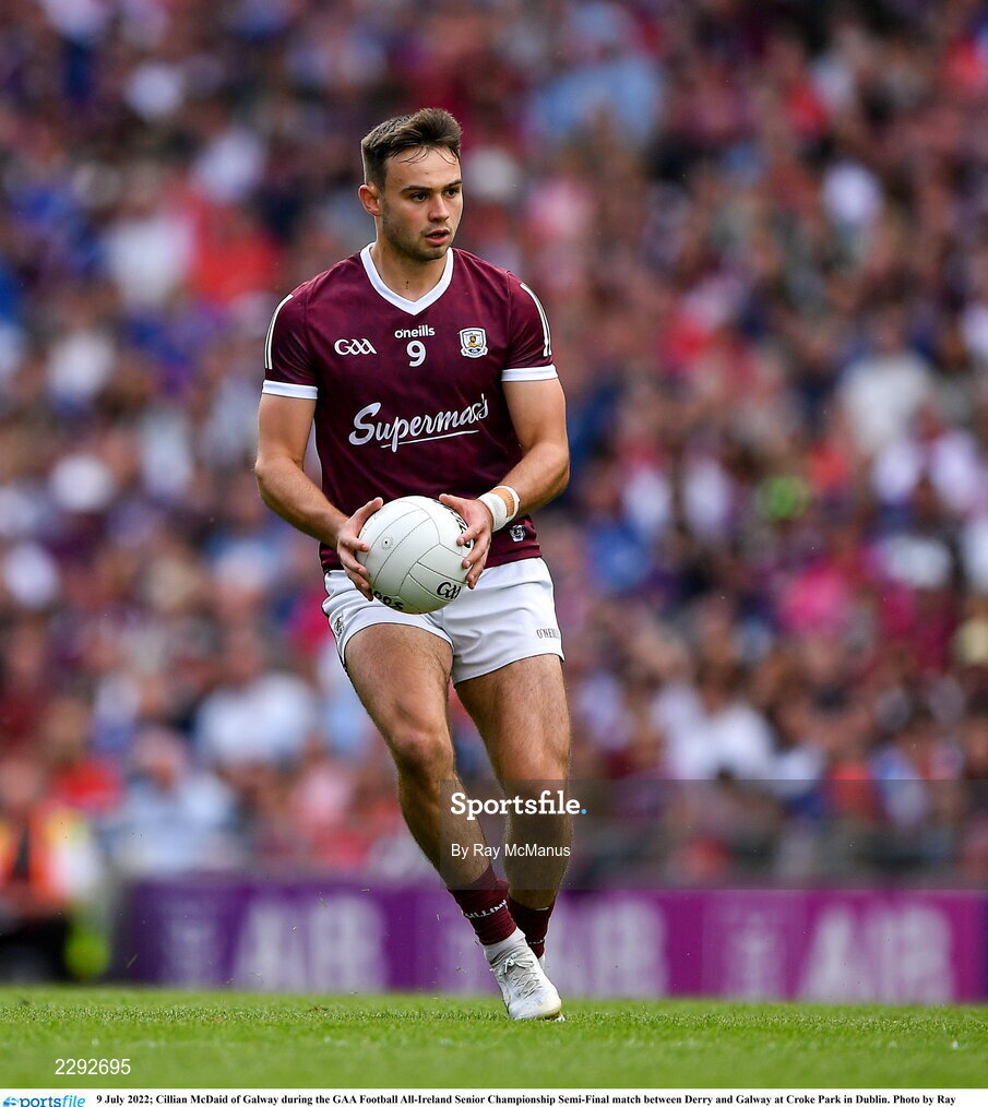 9 July 2022; Cillian McDaid of Galway during the GAA Football All-Ireland Senior Championship Semi-Final match between Derry and Galway at Croke Park in Dublin. Photo by Ray McManus/Sportsfile