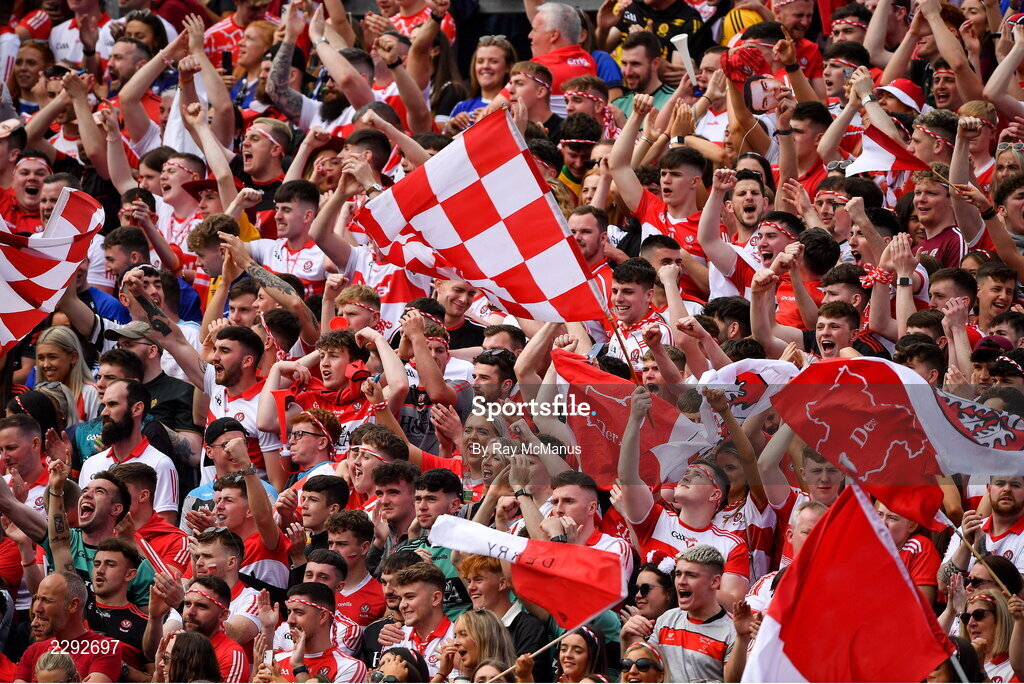 9 July 2022; Derry supporters before the GAA Football All-Ireland Senior Championship Semi-Final match between Derry and Galway at Croke Park in Dublin. Photo by Ray McManus/Sportsfile