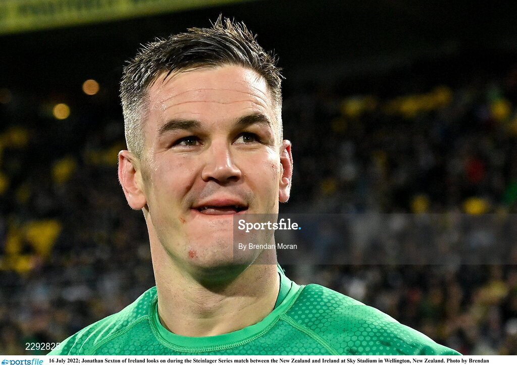 16 July 2022; Jonathan Sexton of Ireland looks on during the Steinlager Series match between the New Zealand and Ireland at Sky Stadium in Wellington, New Zealand. Photo by Brendan Moran/Sportsfile
