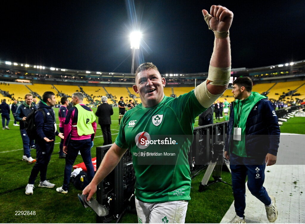 16 July 2022; Tadhg Furlong of Ireland celebrates after the Steinlager Series match between the New Zealand and Ireland at Sky Stadium in Wellington, New Zealand. Photo by Brendan Moran/Sportsfile