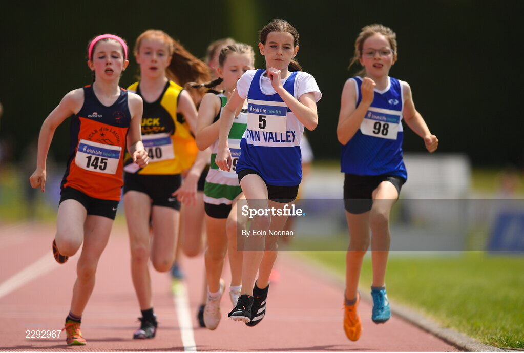 16 July 2022; Katie Lynch of Finn Valley AC, Donegal, competing in the 600m event during in the Irish Life Health Juvenile B Championships & Relays in Tullamore, Offaly. Photo by Eóin Noonan/Sportsfile
