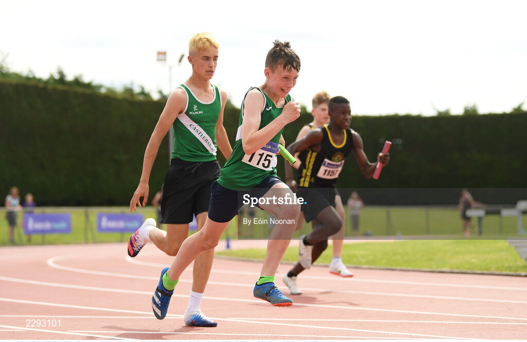 16 July 2022; The Castlebar AC team competing in the 400m relay during in the Irish Life Health Juvenile B Championships & Relays in Tullamore, Offaly. Photo by Eóin Noonan/Sportsfile