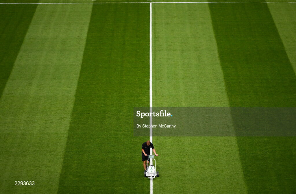 17 July 2022; Croke Park senior groundsman Steven Sutton lines the pitch before the GAA Hurling All-Ireland Senior Championship Final match between Kilkenny and Limerick at Croke Park in Dublin. Photo by Stephen McCarthy/Sportsfile