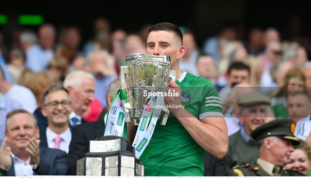 17 July 2022; Gearóid Hegarty of Limerick celebrates with the Liam MacCarthy Cup after the GAA Hurling All-Ireland Senior Championship Final match between Kilkenny and Limerick at Croke Park in Dublin. Photo by Stephen McCarthy/Sportsfile