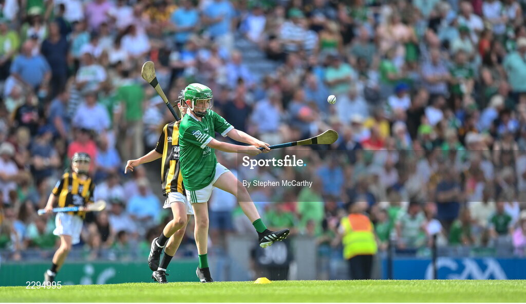 17 July 2022; Conor Gilleece, Tattygar PS, Lisbellaw, Fermanagh, representing Limerick, during the INTO Cumann na mBunscol GAA Respect Exhibition Go Games at half-time of the GAA All-Ireland Senior Hurling Championship Final match between Kilkenny and Limerick at Croke Park in Dublin. Photo by Stephen McCarthy/Sportsfile