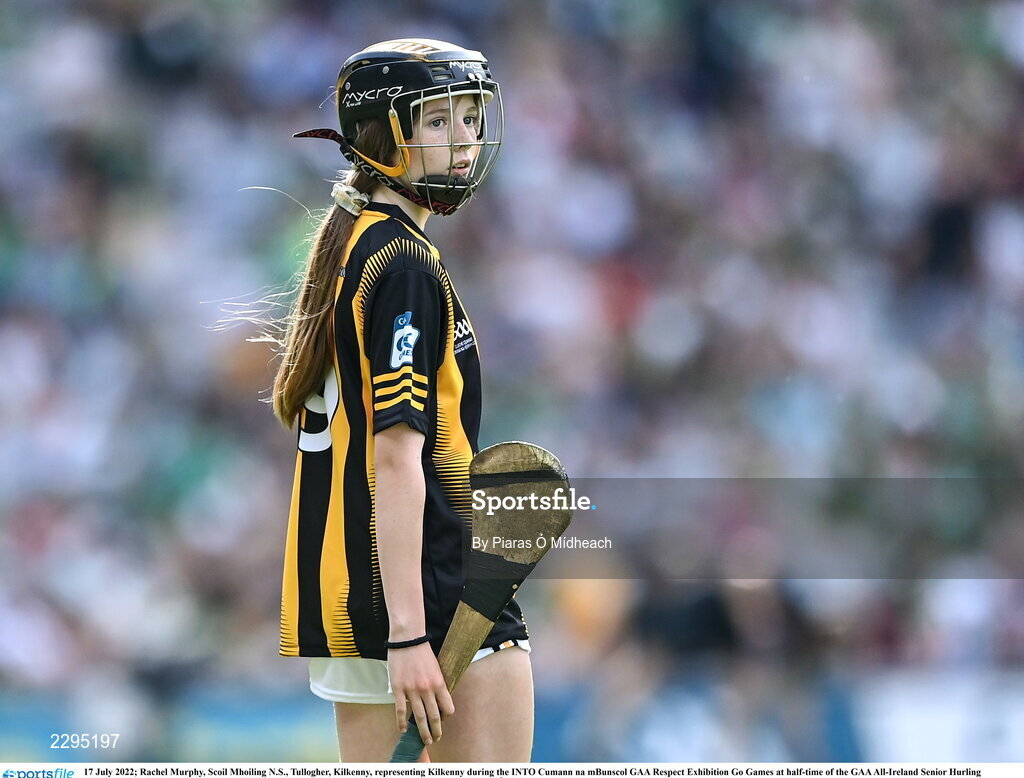 17 July 2022; Rachel Murphy, Scoil Mhoiling N.S., Tullogher, Kilkenny, representing Kilkenny during the INTO Cumann na mBunscol GAA Respect Exhibition Go Games at half-time of the GAA All-Ireland Senior Hurling Championship Final match between Kilkenny and Limerick at Croke Park in Dublin. Photo by Piaras Ó Mídheach/Sportsfile