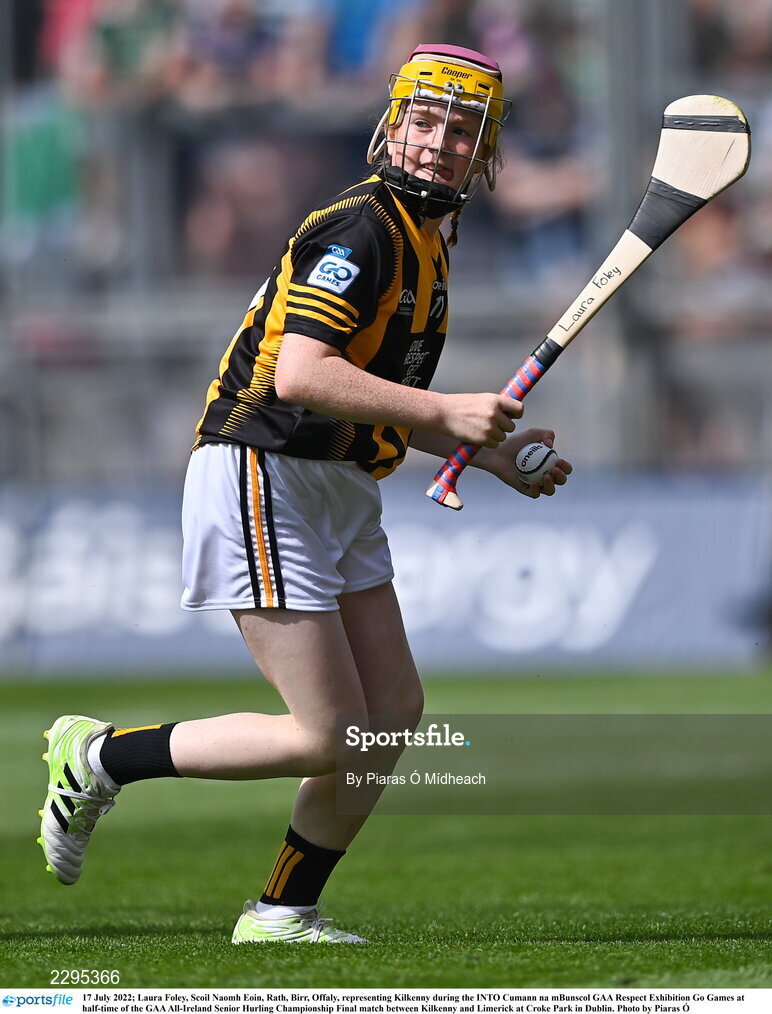 17 July 2022; Laura Foley, Scoil Naomh Eoin, Rath, Birr, Offaly, representing Kilkenny during the INTO Cumann na mBunscol GAA Respect Exhibition Go Games at half-time of the GAA All-Ireland Senior Hurling Championship Final match between Kilkenny and Limerick at Croke Park in Dublin. Photo by Piaras Ó Mídheach/Sportsfile