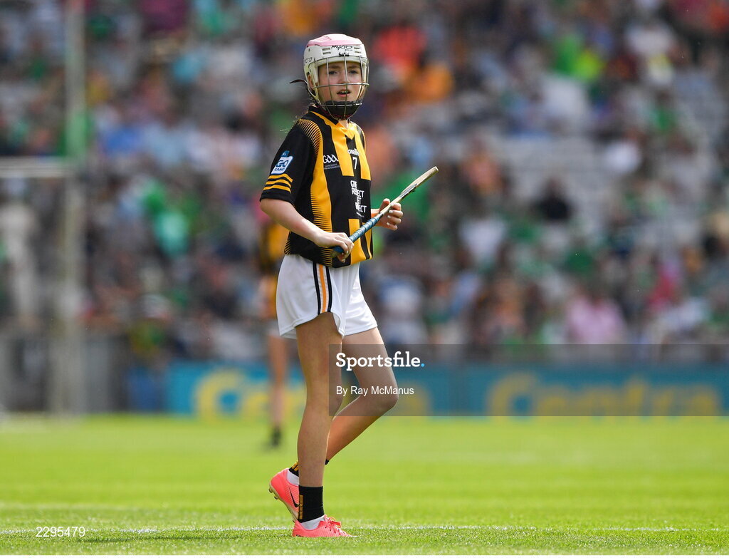 17 July 2022; Torri Spellman, New Inn N.S., Ballinasloe, Galway, representing Kilkenny during the INTO Cumann na mBunscol GAA Respect Exhibition Go Games at half-time of the GAA All-Ireland Senior Hurling Championship Final match between Kilkenny and Limerick at Croke Park in Dublin. Photo by Ray McManus/Sportsfile