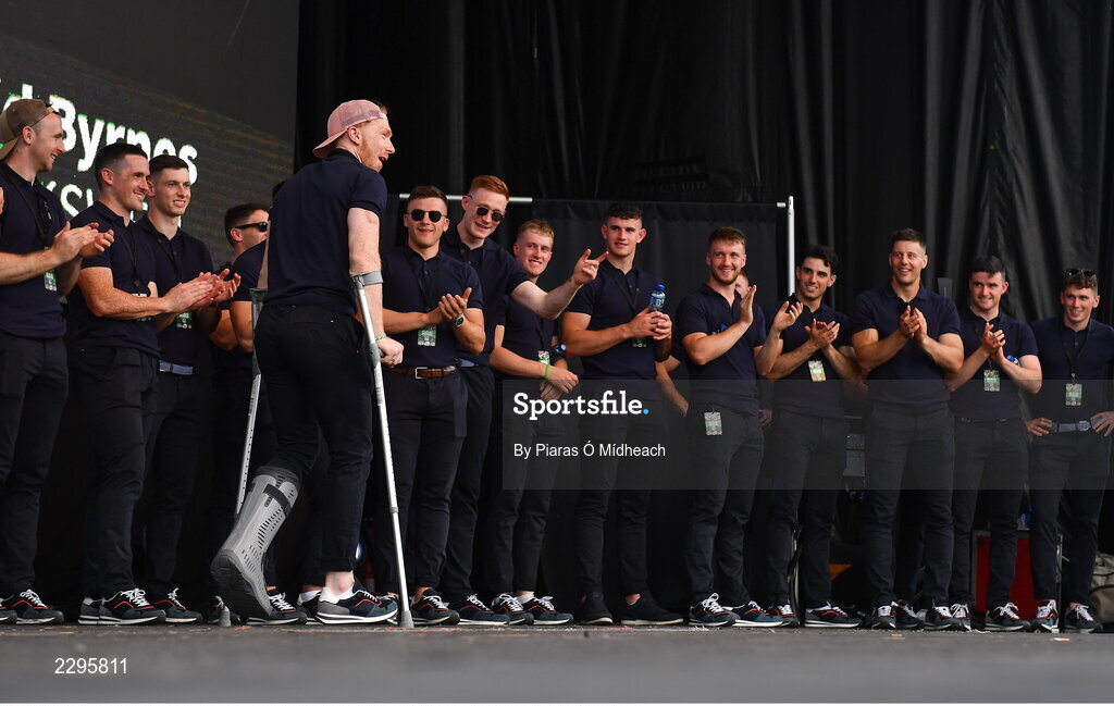 18 July 2022; Cian Lynch with teammates during the homecoming celebrations of the All-Ireland Senior Hurling Champions Limerick at TUS Gaelic Grounds in Limerick. Photo by Piaras Ó Mídheach/Sportsfile