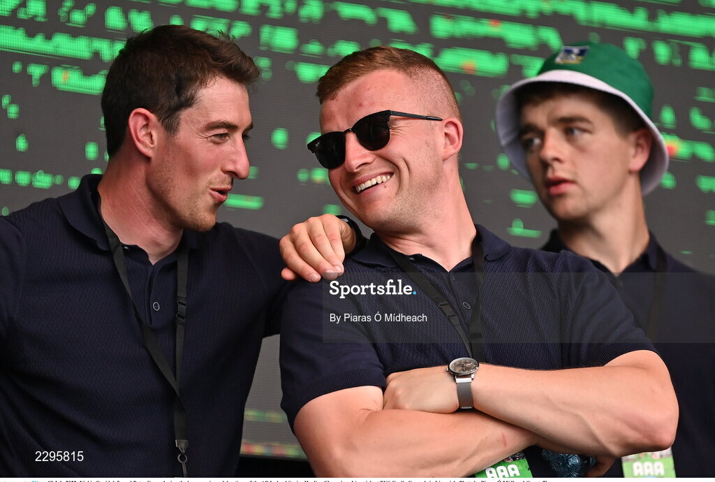 18 July 2022; Nickie Quaid, left, and Peter Casey during the homecoming celebrations of the All-Ireland Senior Hurling Champions Limerick at TUS Gaelic Grounds in Limerick. Photo by Piaras Ó Mídheach/Sportsfile
