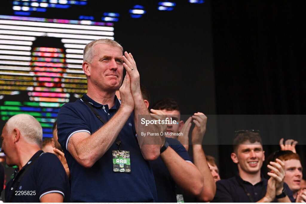 18 July 2022; Manager John Kiely during the homecoming celebrations of the All-Ireland Senior Hurling Champions Limerick at TUS Gaelic Grounds in Limerick. Photo by Piaras Ó Mídheach/Sportsfile