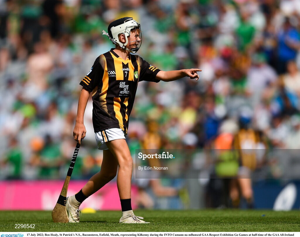 17 July 2022; Ben Healy, St Patrick's N.S., Baconstown, Enfield, Meath, representing Kilkenny during the INTO Cumann na mBunscol GAA Respect Exhibition Go Games at half-time of the GAA All-Ireland Senior Hurling Championship Final match between Kilkenny and Limerick at Croke Park in Dublin. Photo by Eóin Noonan/Sportsfile