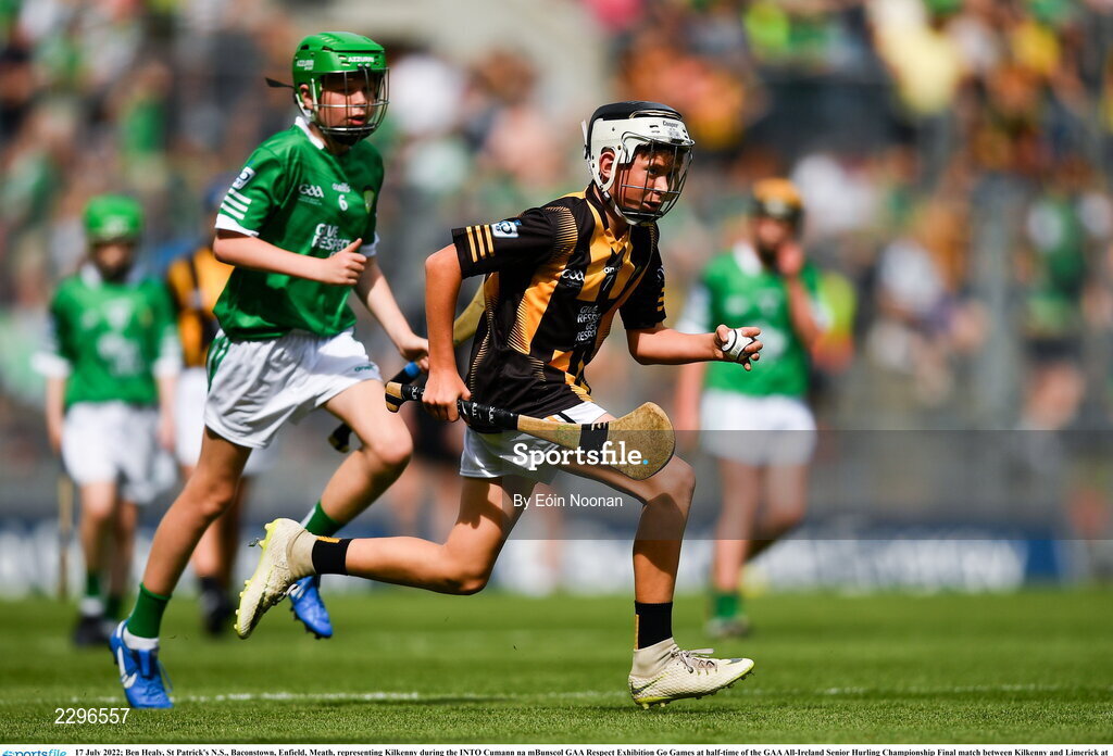 17 July 2022; Ben Healy, St Patrick's N.S., Baconstown, Enfield, Meath, representing Kilkenny during the INTO Cumann na mBunscol GAA Respect Exhibition Go Games at half-time of the GAA All-Ireland Senior Hurling Championship Final match between Kilkenny and Limerick at Croke Park in Dublin. Photo by Eóin Noonan/Sportsfile