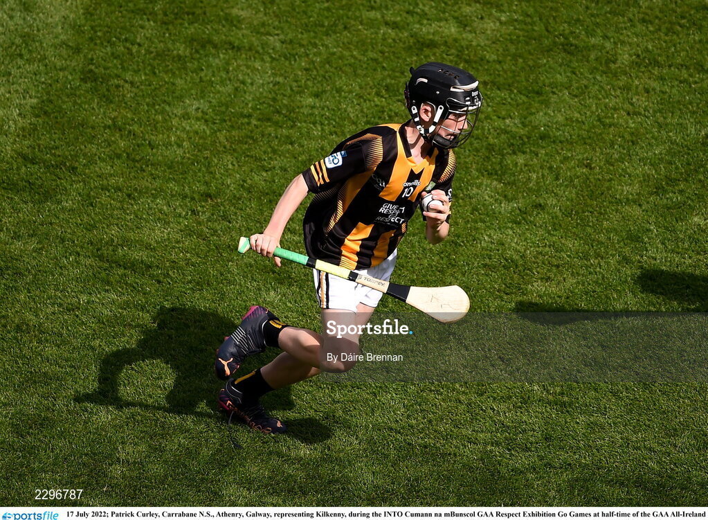 17 July 2022; Patrick Curley, Carrabane N.S., Athenry, Galway, representing Kilkenny, during the INTO Cumann na mBunscol GAA Respect Exhibition Go Games at half-time of the GAA All-Ireland Senior Hurling Championship Final match between Kilkenny and Limerick at Croke Park in Dublin. Photo by Daire Brennan/Sportsfile