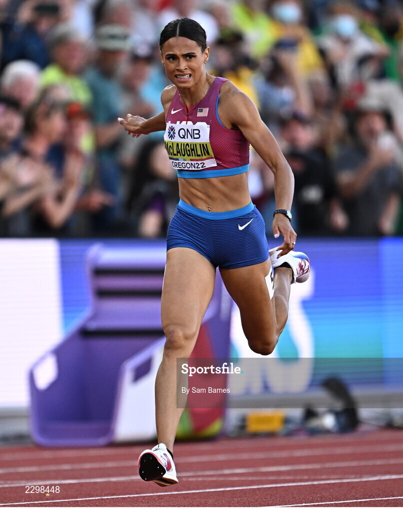 22 July 2022; Sydney McLaughlin of USA after winning the women's 400m hurdles final during day eight of the World Athletics Championships at Hayward Field in Eugene, Oregon, USA. Photo by Sam Barnes/Sportsfile