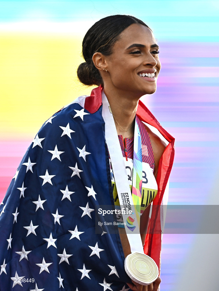 22 July 2022; Sydney McLaughlin of USA during the women's 400m hurdles final during day eight of the World Athletics Championships at Hayward Field in Eugene, Oregon, USA. Photo by Sam Barnes/Sportsfile
