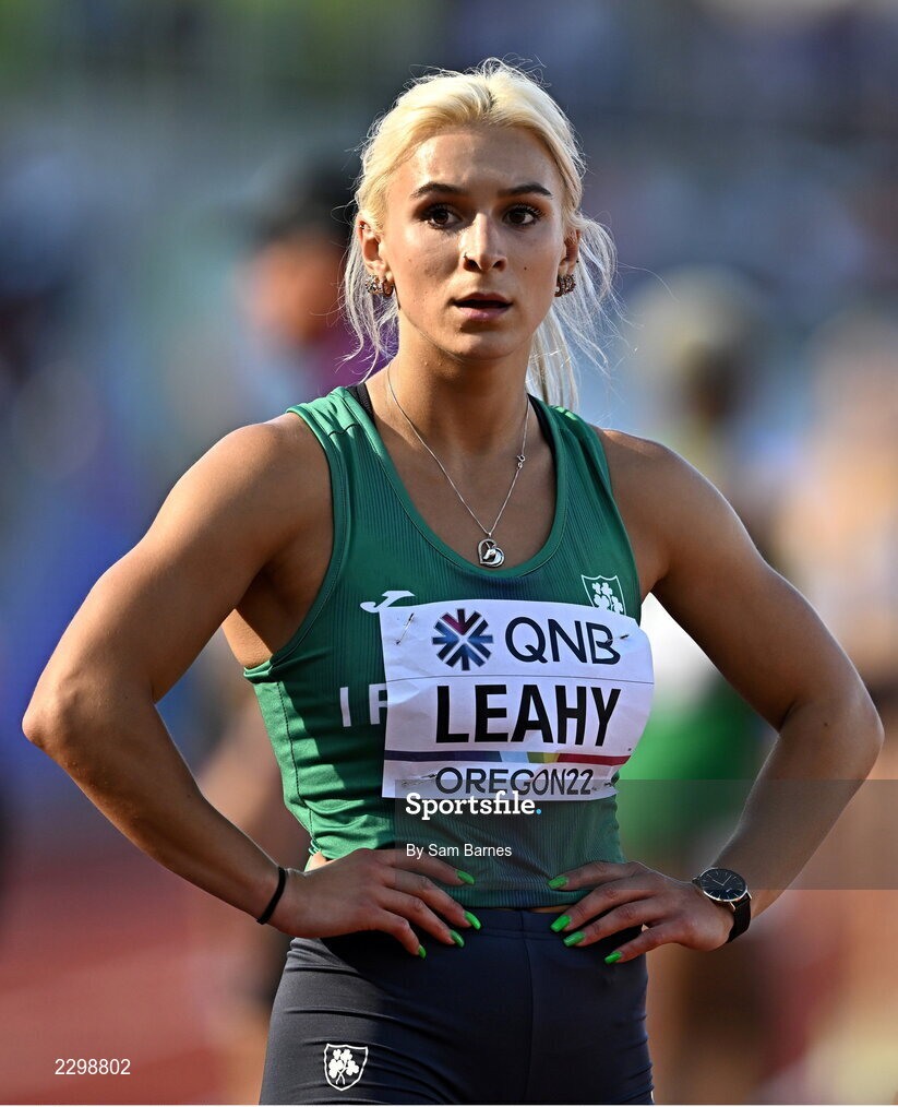 22 July 2022; Sarah Leahy of Ireland during the women's 4x100m relay during day eight of the World Athletics Championships at Hayward Field in Eugene, Oregon, USA. Photo by Sam Barnes/Sportsfile