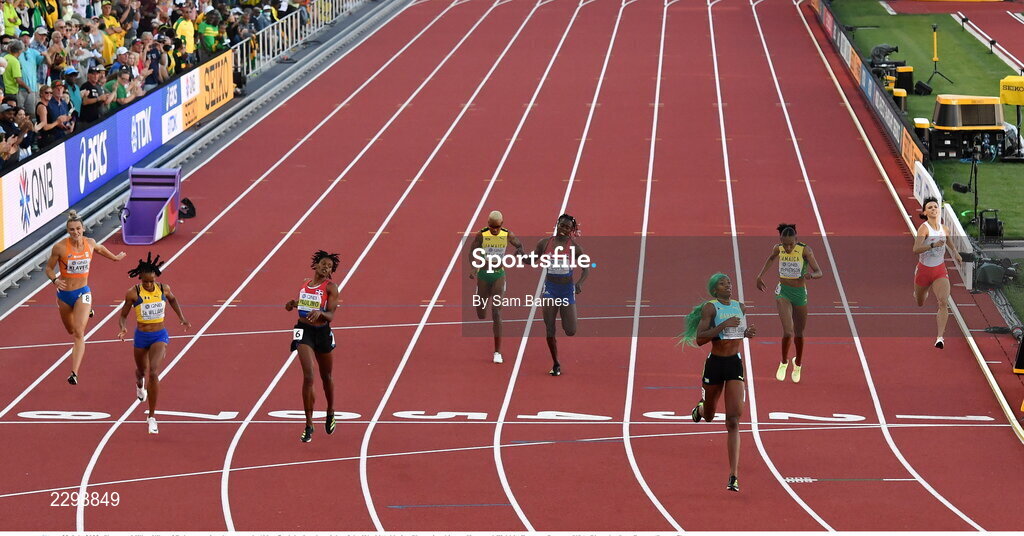 22 July 2022; Shaunae Miller-Uibo of Bahamas wins the women's 400m final during day eight of the World Athletics Championships at Hayward Field in Eugene, Oregon, USA. Photo by Sam Barnes/Sportsfile