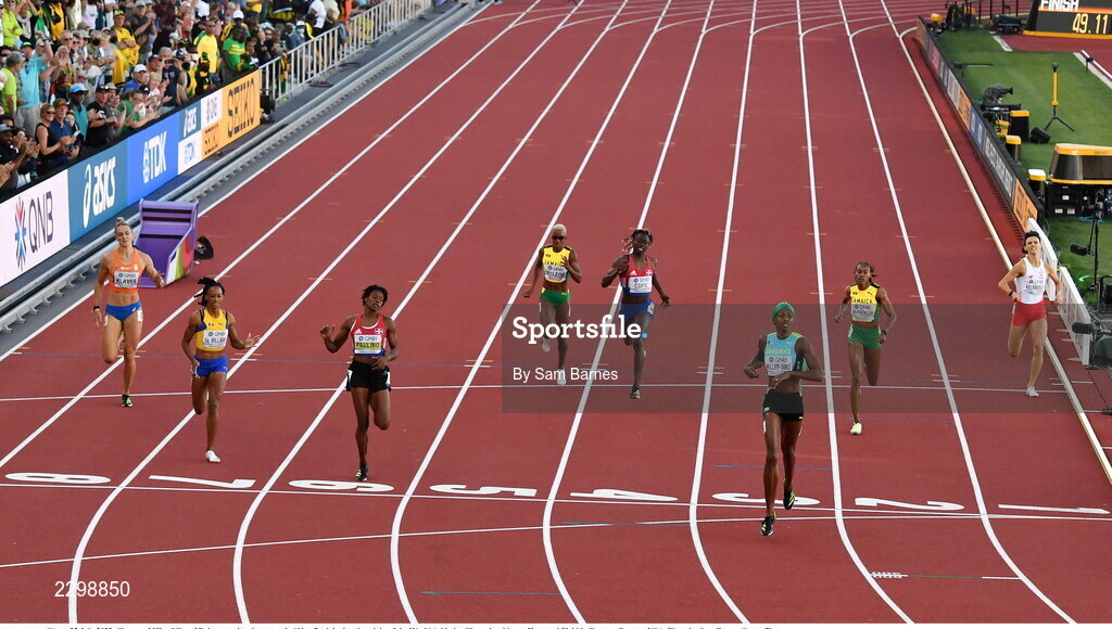 22 July 2022; Shaunae Miller-Uibo of Bahamas wins the women's 400m final during day eight of the World Athletics Championships at Hayward Field in Eugene, Oregon, USA. Photo by Sam Barnes/Sportsfile
