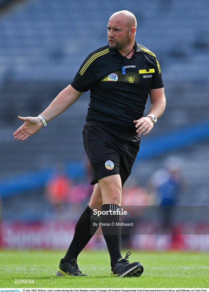 23 July 2022; Referee Andy Larkin during the Glen Dimplex Senior Camogie All-Ireland Championship Semi-Final match between Galway and Kilkenny at Croke Park in Dublin. Photo by Piaras Ó Mídheach/Sportsfile