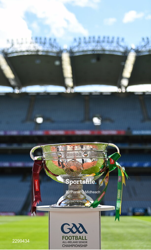 24 July 2022; The Sam Maguire Cup before the GAA Football All-Ireland Senior Championship Final match between Kerry and Galway at Croke Park in Dublin. Photo by Piaras Ó Mídheach/Sportsfile