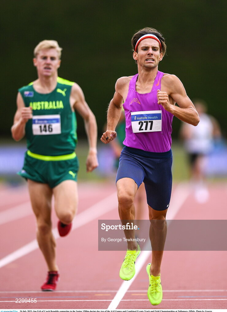 24 July 2022; Jan Friš of Czech Republic competing in the Senior 1500m during day two of the AAI Games and Combined Events Track and Field Championships at Tullamore, Offaly. Photo by George Tewkesbury/Sportsfile
