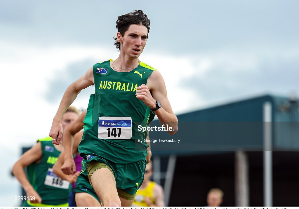 24 July 2022; Jack Lunn of Australia leading the group while competing in the Senior 800m during day two of the AAI Games and Combined Events Track and Field Championships at Tullamore, Offaly. Photo by George Tewkesbury/Sportsfile