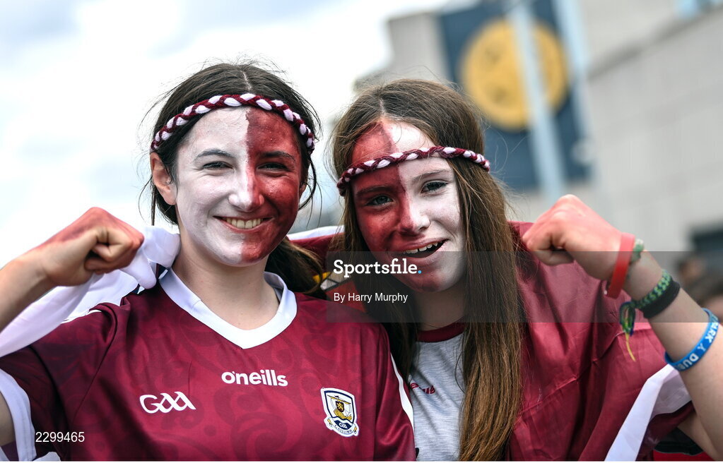 24 July 2022; Alisha O'Malley and Aoife Birmingham from Hedford, Galway, before the GAA Football All-Ireland Senior Championship Final match between Kerry and Galway at Croke Park in Dublin. Photo by Harry Murphy/Sportsfile