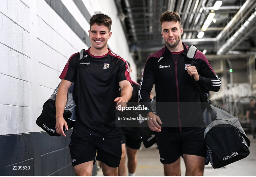 24 July 2022; Seán Kelly, left, and Paul Conroy of Galway arrives for the GAA Football All-Ireland Senior Championship Final match between Kerry and Galway at Croke Park in Dublin. Photo by Stephen McCarthy/Sportsfile