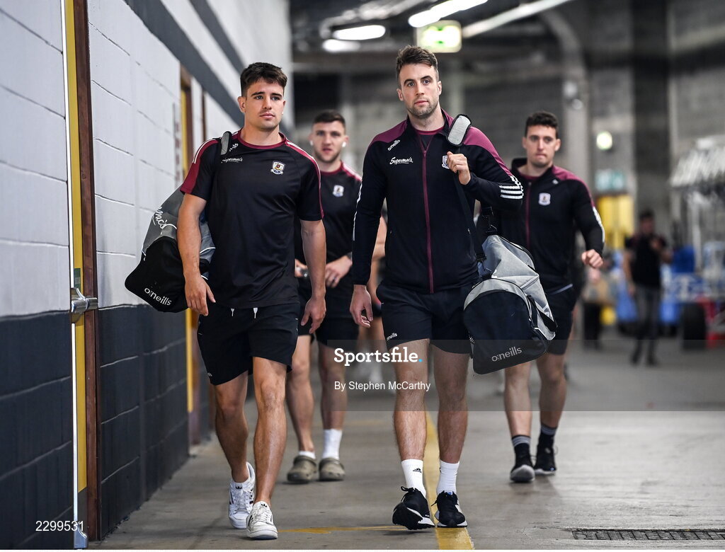 24 July 2022; Seán Kelly, left, and Paul Conroy of Galway arrives for the GAA Football All-Ireland Senior Championship Final match between Kerry and Galway at Croke Park in Dublin. Photo by Stephen McCarthy/Sportsfile