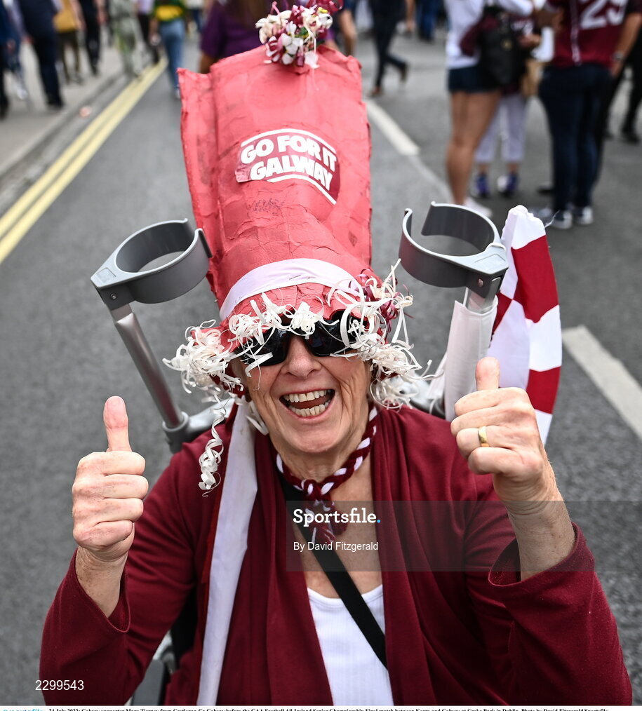 24 July 2022; Galway supporter Mary Tierney from Castlegar, Co Galway before the GAA Football All-Ireland Senior Championship Final match between Kerry and Galway at Croke Park in Dublin. Photo by David Fitzgerald/Sportsfile