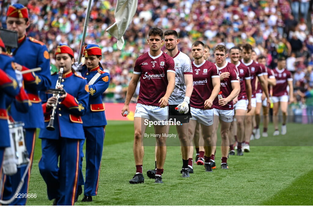 24 July 2022; Galway players, lead by Seán Kelly, in the pre-match parade before the GAA Football All-Ireland Senior Championship Final match between Kerry and Galway at Croke Park in Dublin. Photo by Harry Murphy/Sportsfile