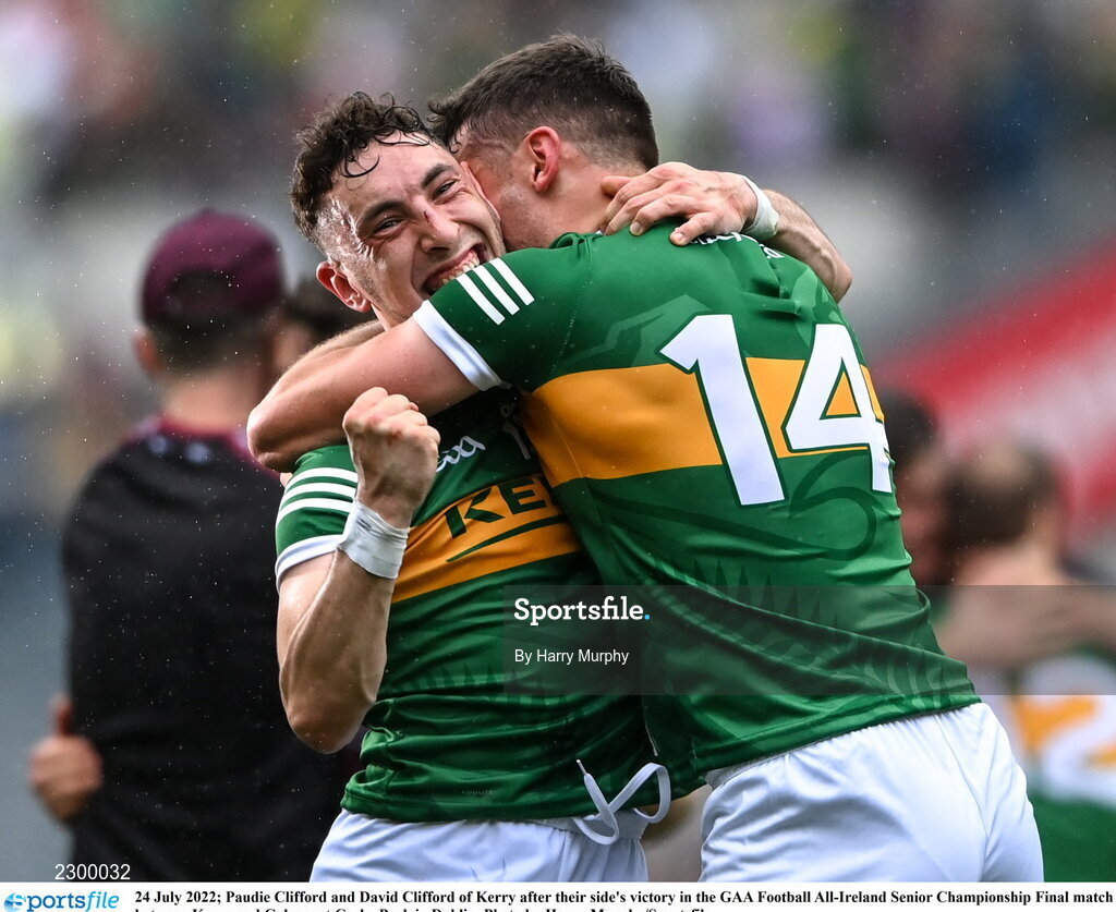 24 July 2022; Paudie Clifford and David Clifford of Kerry after their side's victory in the GAA Football All-Ireland Senior Championship Final match between Kerry and Galway at Croke Park in Dublin. Photo by Harry Murphy/Sportsfile