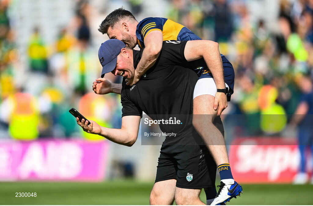 24 July 2022; Kerry selector Micheál Quirke and Kerry goalkeeper Shane Murphy after their side's victory in the GAA Football All-Ireland Senior Championship Final match between Kerry and Galway at Croke Park in Dublin. Photo by Harry Murphy/Sportsfile