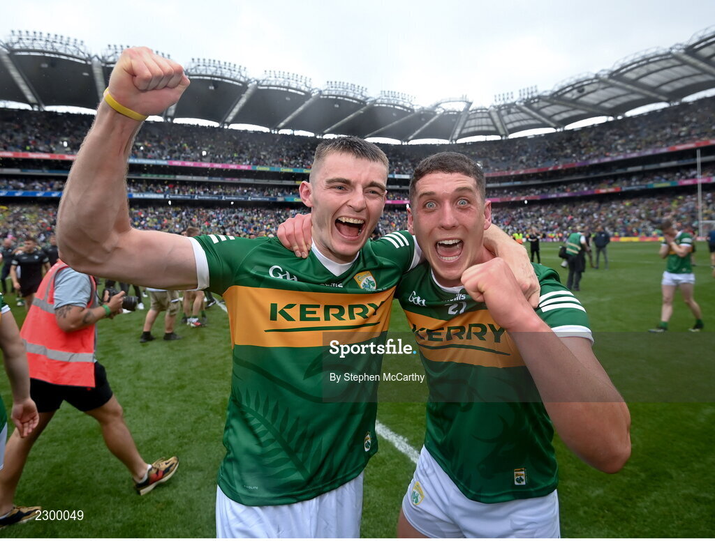 24 July 2022; Diarmuid O'Connor, left, and Joe O'Connor of Kerry celebrate after the GAA Football All-Ireland Senior Championship Final match between Kerry and Galway at Croke Park in Dublin. Photo by Stephen McCarthy/Sportsfile