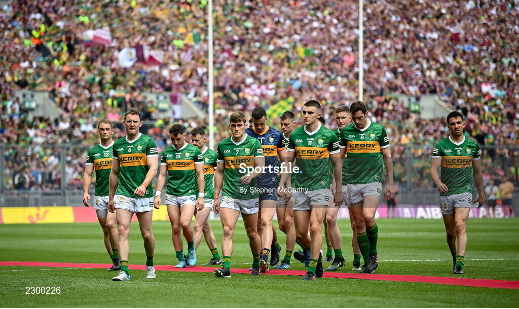 24 July 2022; Kerry players before the GAA Football All-Ireland Senior Championship Final match between Kerry and Galway at Croke Park in Dublin. Photo by Stephen McCarthy/Sportsfile