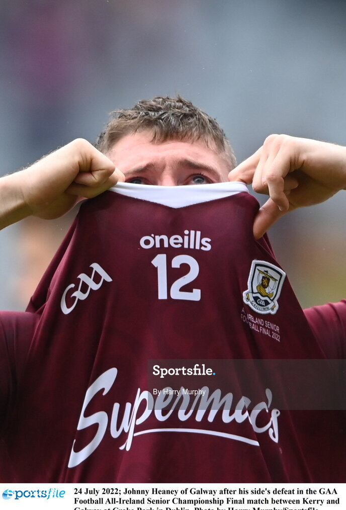24 July 2022; Johnny Heaney of Galway after his side's defeat in the GAA Football All-Ireland Senior Championship Final match between Kerry and Galway at Croke Park in Dublin. Photo by Harry Murphy/Sportsfile