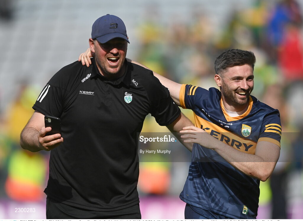 24 July 2022; Kerry selector Micheál Quirke and Kerry goalkeeper Shane Murphy after their side's victory in the GAA Football All-Ireland Senior Championship Final match between Kerry and Galway at Croke Park in Dublin. Photo by Harry Murphy/Sportsfile