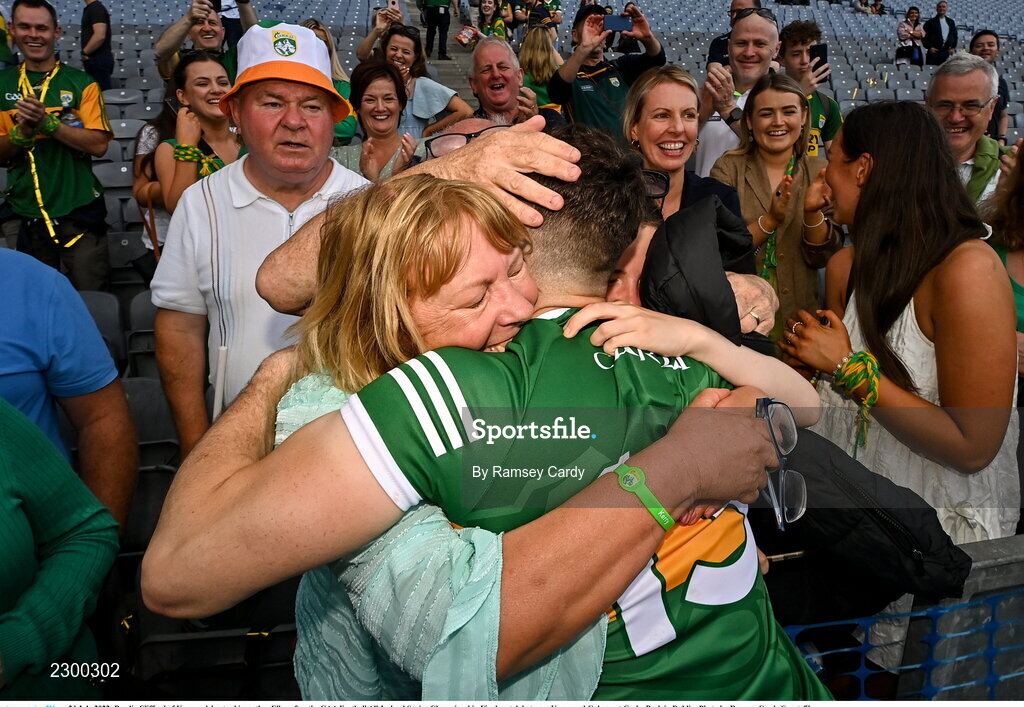 24 July 2022; Paudie Clifford of Kerry celebrates his mother Ellen after the GAA Football All-Ireland Senior Championship Final match between Kerry and Galway at Croke Park in Dublin. Photo by Ramsey Cardy/Sportsfile