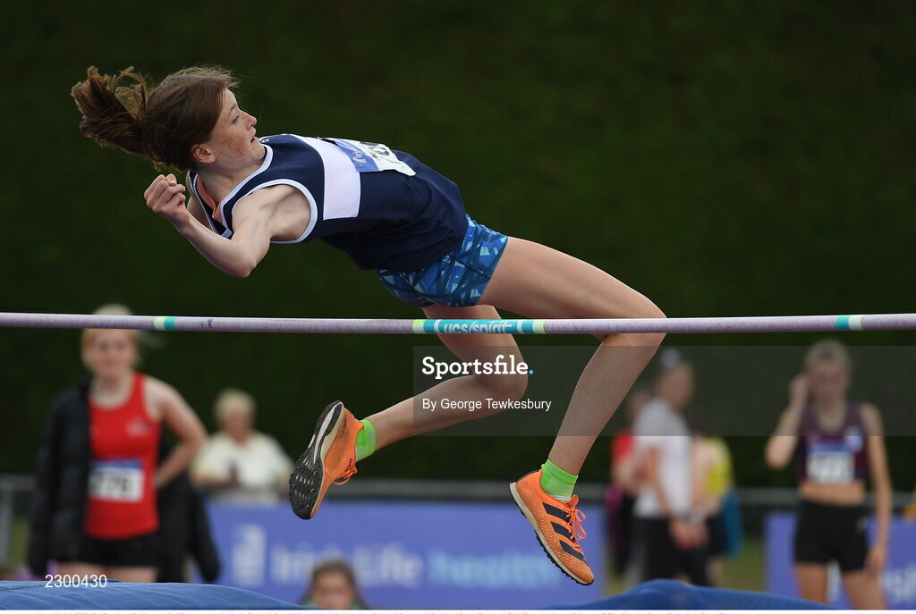 24 July 2022; Eve Dunphy of St. Senans A.C., Kilkenny competing in the Under 16 Juvenile Pentathlon during day two of the AAI Games and Combined Events Track and Field Championships at Tullamore, Offaly. Photo by George Tewkesbury/Sportsfile