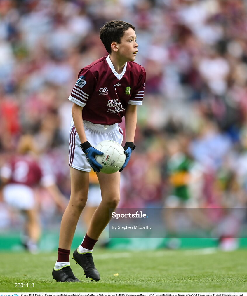 24 July 2022; Devin De Burca, Gaelscoil Mhic Amhlaigh, Cnoc na Cathrach, Galway, during the INTO Cumann na mBunscol GAA Respect Exhibition Go Games at GAA All-Ireland Senior Football Championship Final match between Kerry and Galway at Croke Park in Dublin. Photo by Stephen McCarthy/Sportsfile