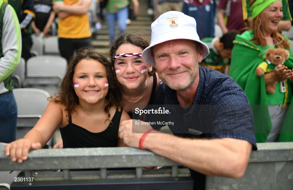 24 July 2022; The Galway supporting Egan family from New York during the GAA Football All-Ireland Senior Championship Final match between Kerry and Galway at Croke Park in Dublin. Photo by Stephen McCarthy/Sportsfile