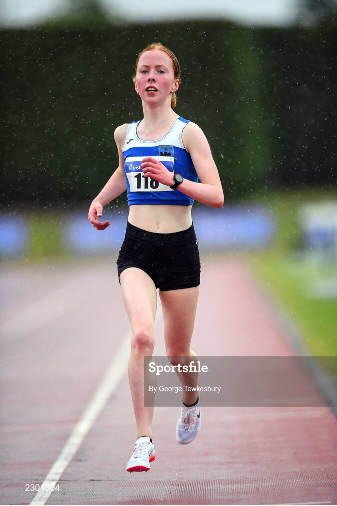 24 July 2022; Imelda Lambe of Tullamore Harriers A.C. competing in the Junior 5000m during day two of the AAI Games and Combined Events Track and Field Championships at Tullamore, Offaly. Photo by George Tewkesbury/Sportsfile