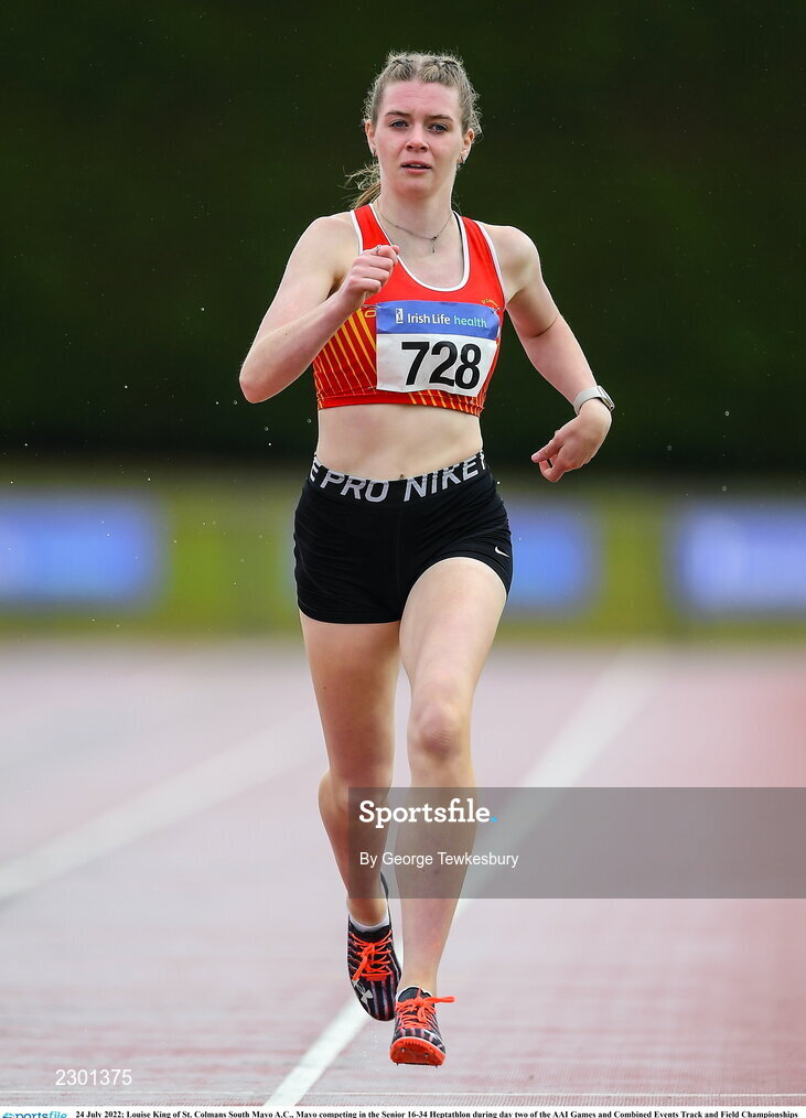 24 July 2022; Louise King of St. Colmans South Mayo A.C., Mayo competing in the Senior 16-34 Heptathlon during day two of the AAI Games and Combined Events Track and Field Championships at Tullamore, Offaly. Photo by George Tewkesbury/Sportsfile