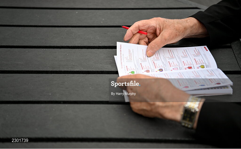 26 July 2022; A racegoer studies the form before racing on day two of the Galway Races Summer Festival at Ballybrit Racecourse in Galway. Photo by Harry Murphy/Sportsfile